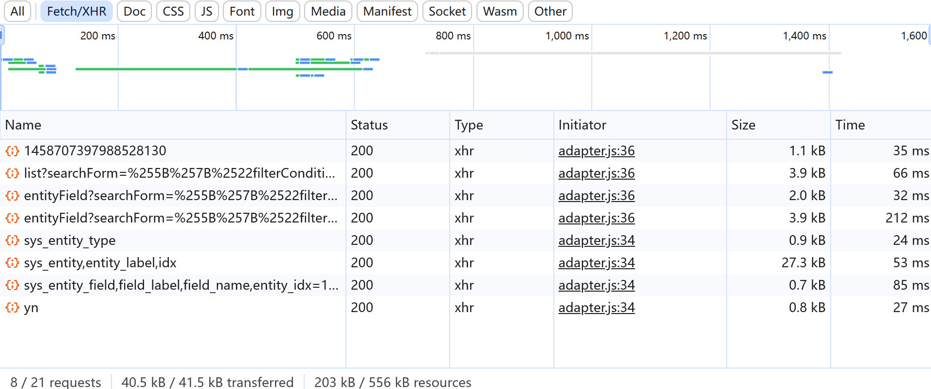 相同页面的请求在使用adapter优化之前和优化之后可以在Network中看到明显区别: