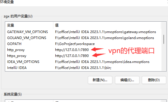 git config --global https.proxy https://127.0.0.1:<vpn代理端口号>后来有遇到需要命令行访问国外镜像的情况,就不能只针对github本身了,在网络上找到一种一劳永逸的方法。 两种方式,一种是通过界面的方式去设置环境变量: Windows环境: