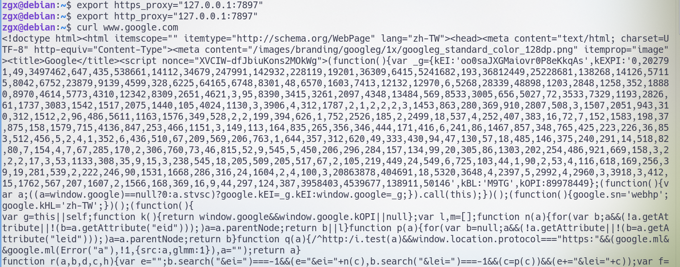 export https_proxy="127.0.0.1:<vpn代理端口号>"这样就可以通过curl命令行访问了: Windows环境: